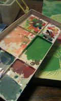 にしてもこのパレット汚い。めんどくさがって綺麗に落とさないからこういう事になるんだ……